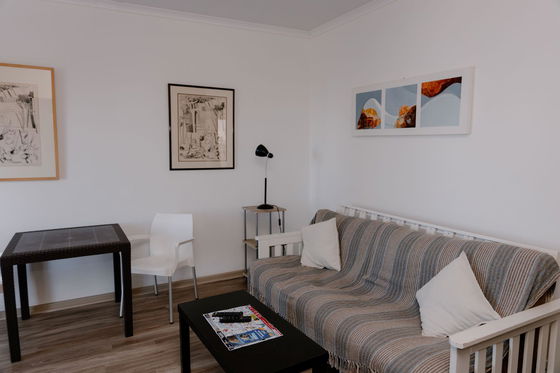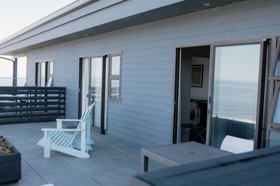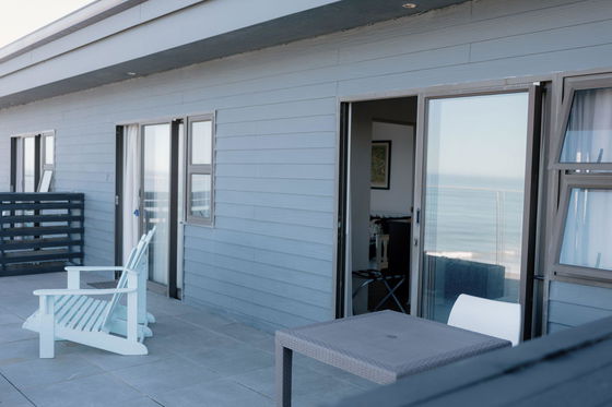 Spacious rooftop deck unit with separate bedroom and lounge, sea views from both, plus a private deck.