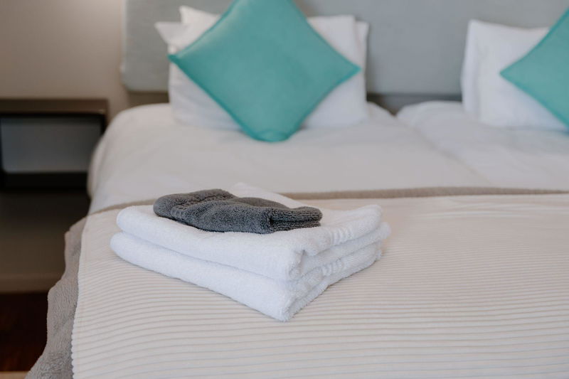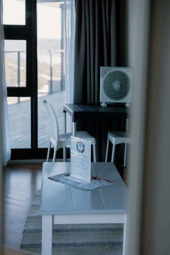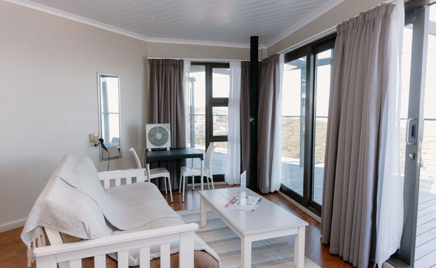 Tranquil corner unit with sea views from both the lounge and bed. Private outdoor seating area.